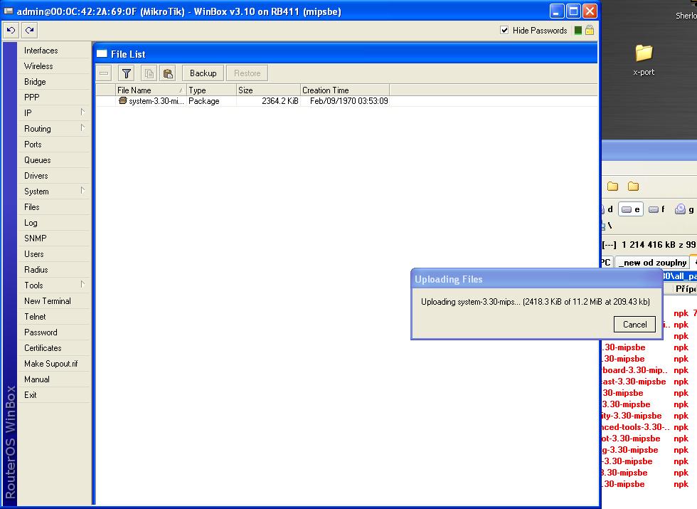 Dneska jsem se jal, prakticky poprvé od doby kdy jsme nasadili do naší wifi sítě mikrotiky, upgradovat firmware ve všech zařízeních. Měl jsem z toho celkem obavy, síť máme relativně rozsáhlou a v tuto hodinu by se mi nechtělo jet se někam šplhat měnit špatně updatované zařízení. No nic, jdu do toho. Všude jsem měl verzi RouterOS 3.10, nyní je aktuální 3.30. Není to zas skok tak velkej, časovej horizont FW je asi 2 roky rozdílu vývoje... Updatoval jsem RB400, RB500 a RB600. Všechny proběhly stejně bezproblémově... Jak na to?
